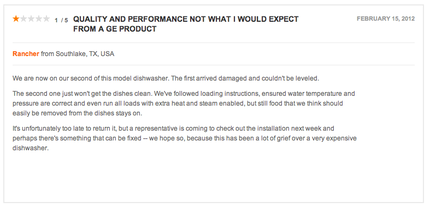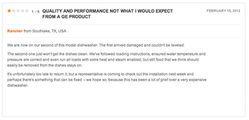 I generally put a lot of stock into social recommendations and I incorporate them heavily into my product analysis. When we moved, we needed a new dishwasher, so I of course went to Home Depot and checked out their selection and settled on the GE GDWT768VSS, a high-end appliance with most features, including quiet operation and an innovative detergent dispenser that meters the exact amount of soap needed to get the dishes clean. Reviews were fine and most noted how quiet it was. In any event, GE is my favorite appliance brand, so it seemed low risk.